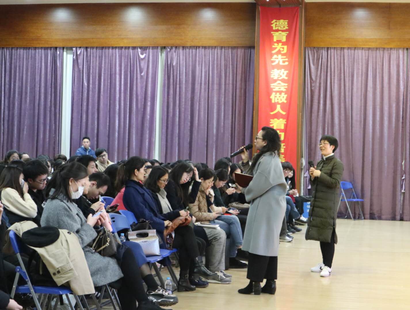 為幫助學(xué)前教育專業(yè)的學(xué)生準確制定教學(xué)活動設(shè)計目標,2017年11月27日晚,教育學(xué)院在校大禮堂召開了 “幼師如何設(shè)計教學(xué)活動目標”研討會。本次研討會由復(fù)旦大學(xué)附屬幼兒園資深教師張筱葉老師主講,教育學(xué)院院長兼黨支部書記錢源偉教授、副院長兼學(xué)前專業(yè)主任李杰老師、黨支部副書記張軍勝老師、團總支書記楊彥琛老師等全院師生共同參加。