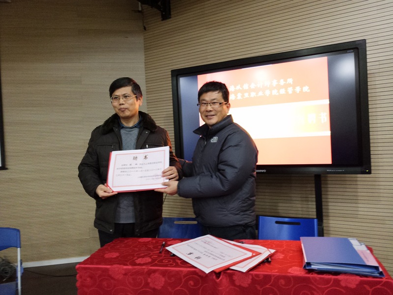 經(jīng)濟管理學(xué)院院長胡守忠教授代表學(xué)院與三家企業(yè)簽訂校企合作協(xié)議、頒發(fā)聘書并揭牌。