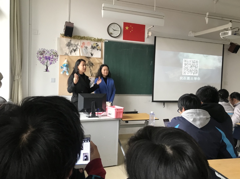 1月17日一大早,宋藝、任艾麗、葉子三位老師再次來到中華職校,在中華職校有關老師的精心安排下,三位老師用PPT向同學們詳細介紹了我院概況、師資、專業(yè)、教學設施、實訓基地等基本情況,并對專業(yè)就業(yè)前景進行了分析和展望。老師們的詳細講解深深地吸引了中華職校的同學們,大家認真聽講,不時有人互動,效果良好。