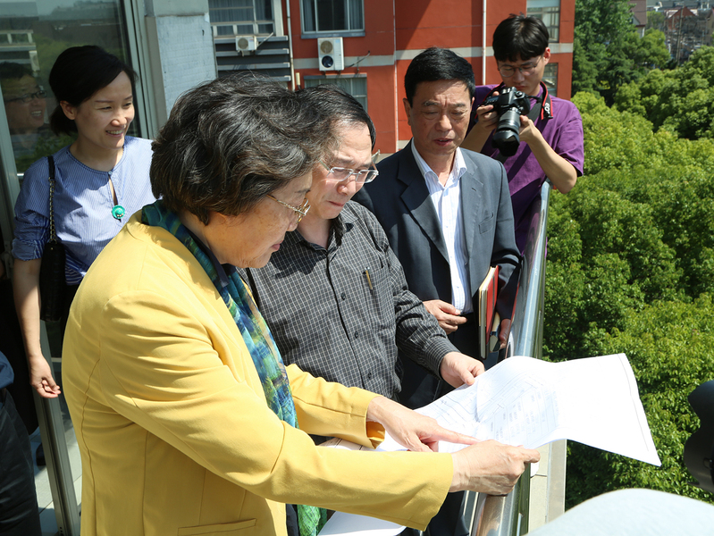 在張惠莉理事長(zhǎng)的帶領(lǐng)下,一行人在教學(xué)樓4樓遙望剛剛完成動(dòng)拆遷工作的西塊校區(qū),張理事長(zhǎng)向高書(shū)記等領(lǐng)導(dǎo)介紹了西塊校區(qū)的總體規(guī)劃和布局。
