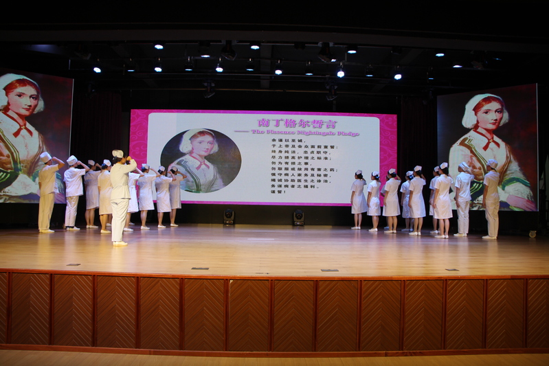 隨后所有護理專業(yè)的同學們,手捧蠟燭,在曹婷老師帶領下,在南丁格爾的畫相面前莊嚴宣誓:“余謹以至誠,于上帝及會眾面前宣誓:終身純潔,忠貞職守,盡力提高護理之標準;勿為有損之事,勿取服或故用有害之藥;慎守病人家務及秘密,竭誠協(xié)助醫(yī)生之診治,務謀病者之福利?!?/span>