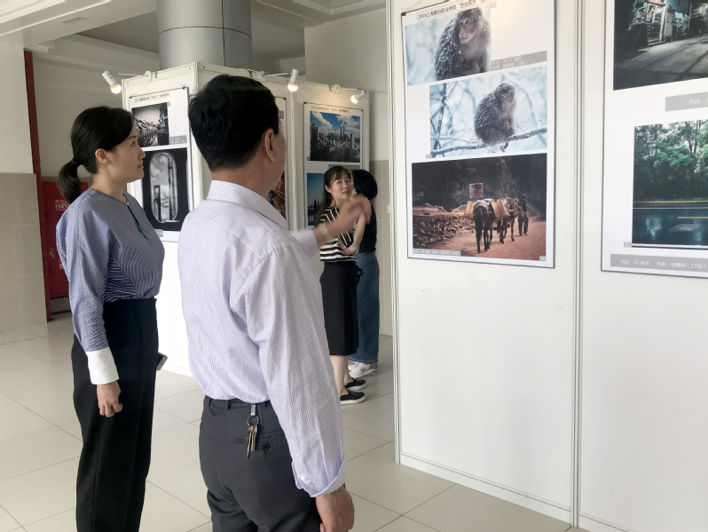 啟動儀式結(jié)束后,校領(lǐng)導和師生們興致勃勃地參觀了學生攝影作品展,并在體藝樓“東影放映廳”觀看了學生優(yōu)秀短片作品的展映。