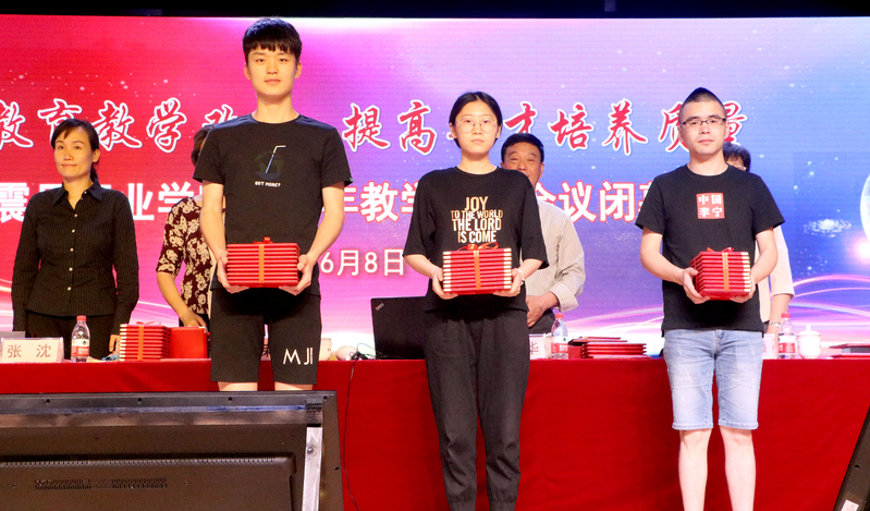 隨后,王純玉副校長宣讀《關(guān)于表彰2018年各類職業(yè)技能競賽集體和個人的決定》;夏臻副書記宣讀了《關(guān)于2018年教學(xué)質(zhì)量月的表彰決定》,表彰教師之星、教學(xué)成果展示以及“課程思政微課”教學(xué)比賽中獲獎的教師和學(xué)院;張沈董事長宣讀了2018年教師職務(wù)評聘通知并頒發(fā)證書。