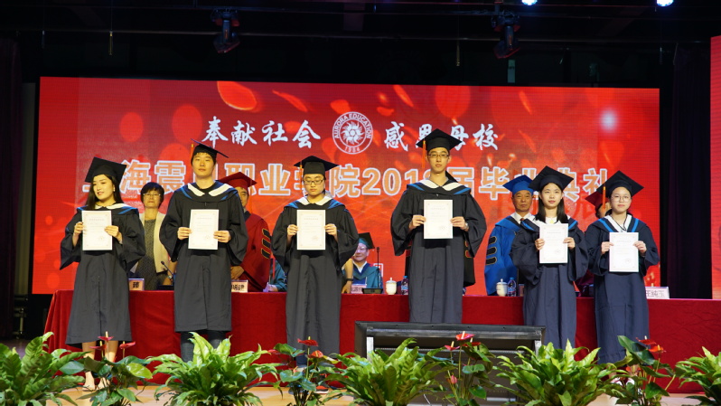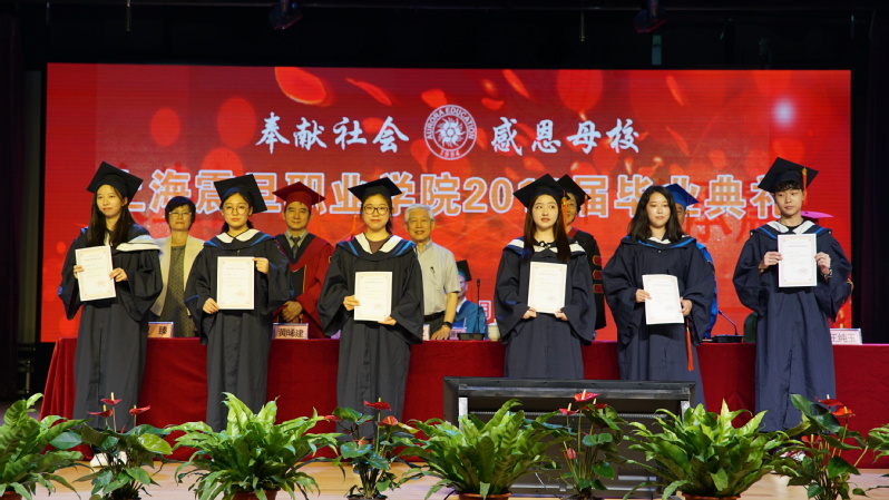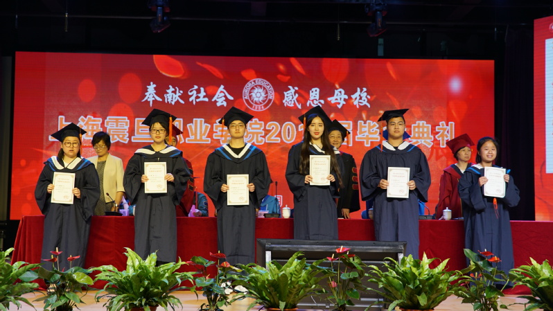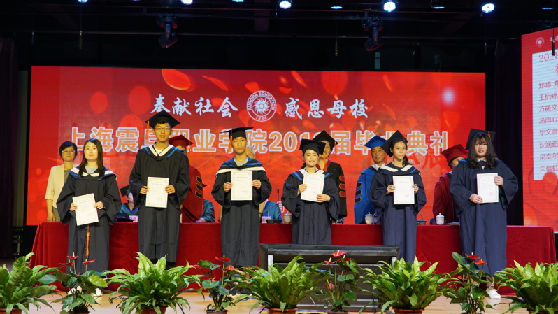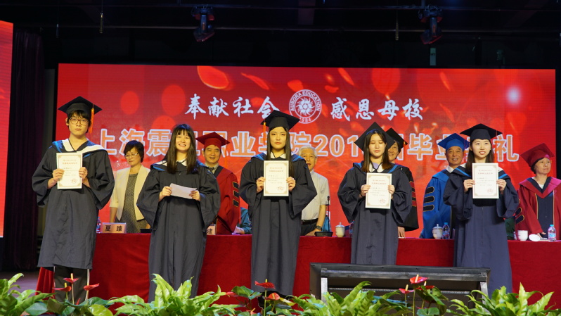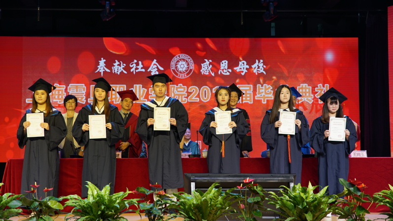 在莊嚴(yán)的國(guó)歌聲中,我校2018屆畢業(yè)典禮拉開(kāi)帷幕。校黨委書記黃晞建宣讀了“2018年上海震旦職業(yè)學(xué)院優(yōu)秀畢業(yè)生表彰決定”。在今年的1282名畢業(yè)生中,42名學(xué)生獲得了“上海市普通高等學(xué)校優(yōu)秀畢業(yè)生”的榮譽(yù)稱號(hào),26名學(xué)生獲得了“上海震旦職業(yè)學(xué)院校級(jí)優(yōu)秀畢業(yè)生”的榮譽(yù)稱號(hào)。在畢業(yè)典禮上,校領(lǐng)導(dǎo)向這些同學(xué)頒發(fā)了榮譽(yù)證書。此外,李曉欣等17名同學(xué)考取了本科,4名同學(xué)已預(yù)報(bào)名參軍,更有大量同學(xué)獲得了各類職業(yè)技能證書。