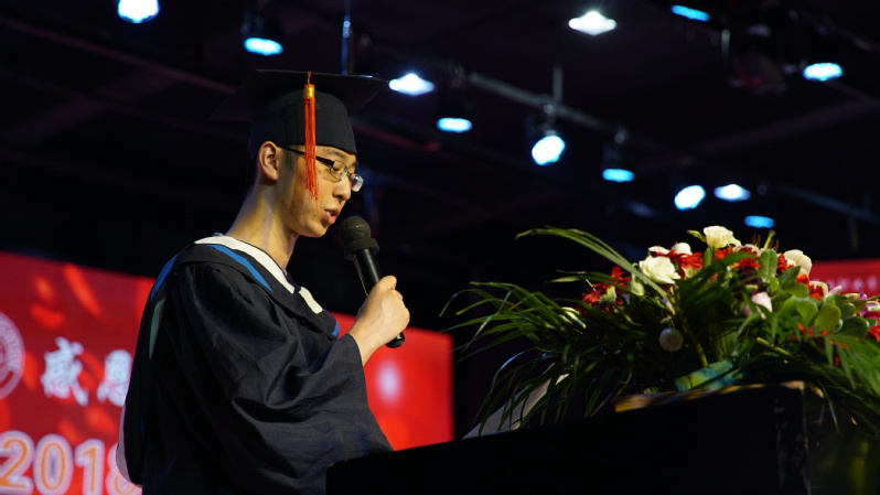 國(guó)家獎(jiǎng)學(xué)金獲得者、上海市優(yōu)秀畢業(yè)生、來(lái)自機(jī)電工程學(xué)院數(shù)控技術(shù)專業(yè)的湯雨心同學(xué)代表2018屆畢業(yè)生代表發(fā)言。他首先向大家分享了自己在大學(xué)三年中的成長(zhǎng)與收獲,同時(shí),懷著感恩之心,表達(dá)了對(duì)學(xué)校、對(duì)老師、對(duì)輔導(dǎo)員的感謝。最后祝福大家立鴻鵠志,做追夢(mèng)者、圓夢(mèng)人!