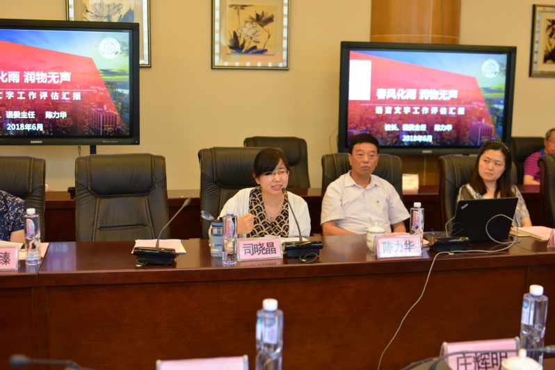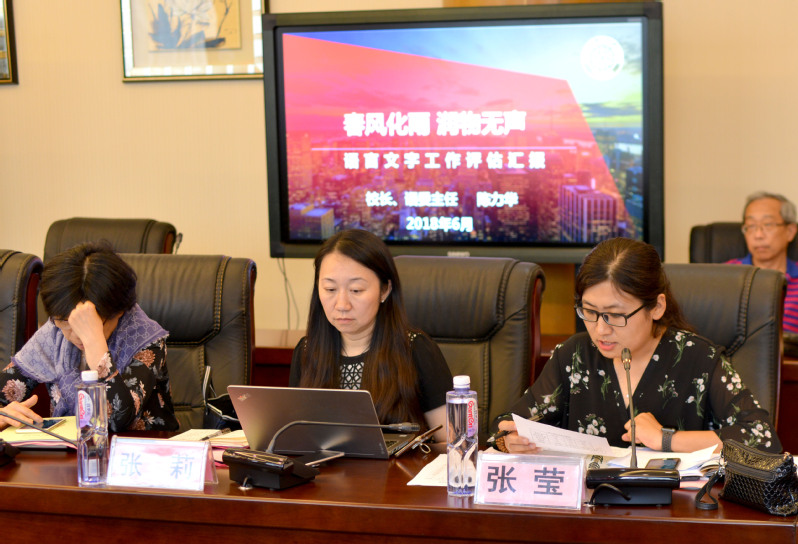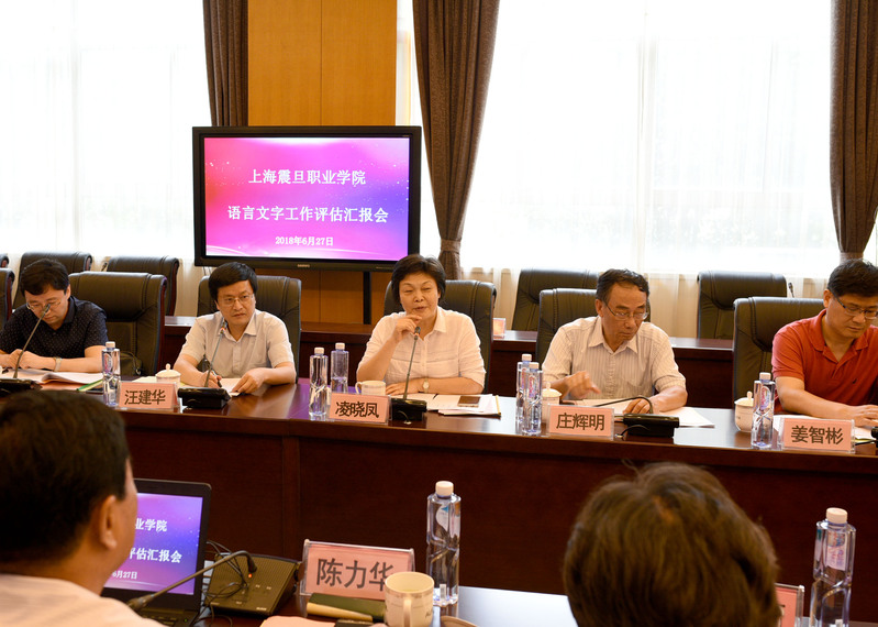 評(píng)估匯報(bào)會(huì)由上海市教育評(píng)估院綜合所所長(zhǎng)汪建華主持,參加匯報(bào)會(huì)的有市教委語管處處長(zhǎng)凌曉鳳,全體專家組成員,理事長(zhǎng)張惠莉、校長(zhǎng)兼語委主任陳力華、黨委書記黃晞建、黨委副書記夏臻,副校長(zhǎng)王純玉以及全體語委委員。