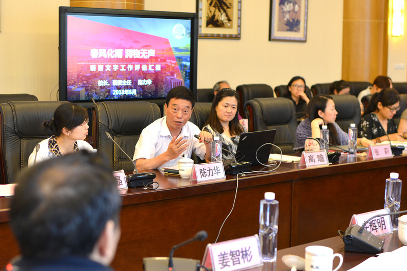 校長(zhǎng)兼語委主任陳力華作了題為《春風(fēng)化雨潤(rùn)物無聲》的自評(píng)報(bào)告。他圍繞“提高認(rèn)識(shí)、明確目標(biāo),實(shí)現(xiàn)語言文字工作制度化”“加強(qiáng)管理、規(guī)范體制,促進(jìn)語言文字工作規(guī)范化”“全面布局、合力推進(jìn),確保語言文字工作常態(tài)化”“以評(píng)促建、評(píng)建結(jié)合、推進(jìn)語言文字工作特色化”四個(gè)方面向?qū)<医M匯報(bào)了近年來我校開展語言文字工作的具體情況、取得的成績(jī)以及存在的不足。他說,本次達(dá)標(biāo)評(píng)估,既是對(duì)學(xué)校近幾年語言文字工作成效的一次檢驗(yàn),也是推動(dòng)促進(jìn)學(xué)校語言文字工作進(jìn)一步健康有序發(fā)展的良好契機(jī),相信通過這次評(píng)估,專家們可以給學(xué)校進(jìn)行針對(duì)性地指導(dǎo),學(xué)校將匯聚全院師生力量,不斷改進(jìn),促進(jìn)語言文字工作在原有基礎(chǔ)上有一個(gè)更好的提升。會(huì)上,學(xué)校黨政領(lǐng)導(dǎo)、語委委員對(duì)評(píng)估專家的現(xiàn)場(chǎng)提問進(jìn)行了回應(yīng)。