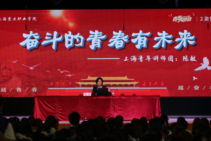 為把組織引導(dǎo)廣大青年深入學(xué)習(xí)宣傳貫徹習(xí)近平新時(shí)代中國(guó)特色社會(huì)主義思想和黨的十九大精神持續(xù)引向深入,學(xué)習(xí)領(lǐng)會(huì)習(xí)近平總書記“7·2”重要講話精神,切實(shí)抓好團(tuán)的十八大精神學(xué)習(xí)宣傳貫徹工作,推動(dòng)新時(shí)代青年和共青團(tuán)工作開創(chuàng)新局面、實(shí)現(xiàn)新發(fā)展,10月12日下午1點(diǎn),我校團(tuán)委在大禮堂舉行了青年大學(xué)習(xí)首場(chǎng)宣講活動(dòng),邀請(qǐng)上海青年講師團(tuán)成員,中國(guó)福利會(huì)少年宮黨總支書記、常務(wù)副主任陳敏老師講述《奮斗的青春有未來》這一主題。參與同學(xué)主要包括18級(jí)教育學(xué)院和18級(jí)機(jī)電工程學(xué)院團(tuán)員青年和入團(tuán)積極分子。