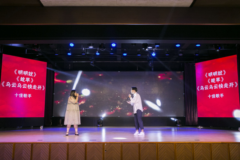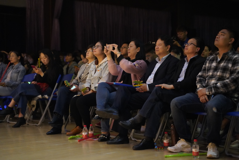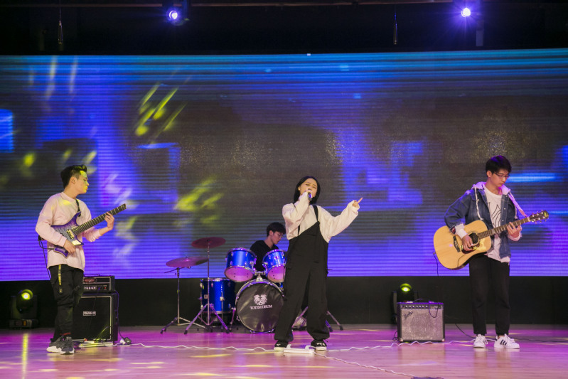 第二篇章奮進(jìn)中,首先由教育學(xué)院的同學(xué)們帶來古箏合奏《戰(zhàn)臺風(fēng)》,使同學(xué)們在古箏純凈的音樂聲中展開無限的遐想,余音繞梁回味無窮。而啦啦操社的女孩們?yōu)榇蠹規(guī)淼睦怖膊俦硌荨?span lang="EN-US">tember》,將啦啦操獨(dú)有的舞步與充滿活力的朝氣向觀眾演繹著青春,演繹著振奮人心的激情,把每一個音符都跳出了青春的活力。隨后由吉他社為觀眾帶來樂隊演奏《陷阱》《易燃易爆炸》,鼓聲響起,全場觀眾紛紛加入這場大合唱,在歌聲中釋放著激情,在吶喊中回憶著青春,將晚會推向一陣高潮。一曲剛停,一舞又起,緊接著舞蹈社帶來了時尚而又帥氣的舞蹈《DDU-DU DDU-DU》,向現(xiàn)場觀眾展現(xiàn)了舞蹈的魅力與風(fēng)采。而由話劇社帶來的話劇表演《幕中無人》,則將社團(tuán)活動中的小場景,通過話劇的表演形式,將人物情感表現(xiàn)的淋漓盡致,幽默詼諧、別有深意。校學(xué)生會是學(xué)校和學(xué)生間溝通的橋梁與紐帶,由校團(tuán)委、學(xué)生會的學(xué)生干部們帶來合唱了《強(qiáng)國一代有我在》作為第二篇章的結(jié)尾,他們精神抖擻,以歌發(fā)聲,唱出了對夢想的堅持不懈,他們希望能為祖國繁榮昌盛貢獻(xiàn)出青年一代的力量,為奮進(jìn)新時代的偉大中國夢添磚加瓦。