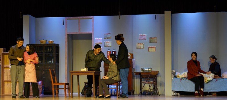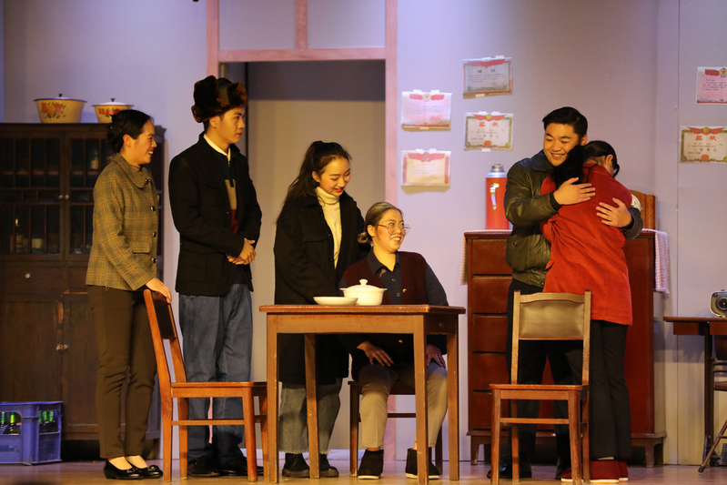 表演專業(yè)副主任宋藝?yán)蠋煋?dān)任該劇導(dǎo)演,通過仔細(xì)研究劇本和指導(dǎo)學(xué)生教學(xué)實踐,她對劇本也有了新的認(rèn)識,在舞臺上對故事進行了新的詮釋,形成了具有特色的震旦版《大哥》。16級的學(xué)生均出生在上世紀(jì)90年代后期,要他們?nèi)パ堇[出生之前的故事,理解當(dāng)時人的行為與思想,并不是件簡單的事。宋藝?yán)蠋熢谂啪氝^程中,通過各種方法把學(xué)生帶入當(dāng)時的情境,一一為他們解釋劇中人的行動線索、心理邏輯、時代背景,慢慢讓學(xué)生們“入了戲”、“動了情”。