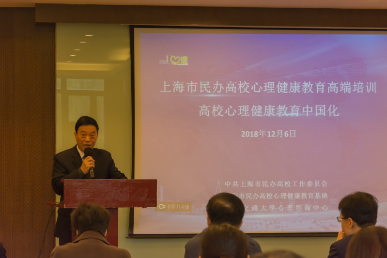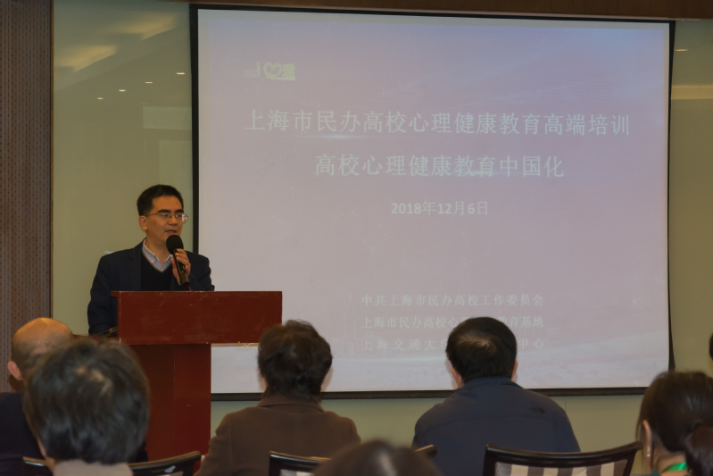 12月6日上午9:30,由上海市民辦高校黨工委、上海市民辦高校心理健康教育基地、上海交通大學(xué)心理咨詢中心聯(lián)合主辦的“心理健康教育中國化”研修班在上海交通大學(xué)閔行校區(qū)學(xué)術(shù)活動中心順利開班。上海市民辦高校黨工委副書記王瑞杰,上海交通大學(xué)黨委常委、副校長、學(xué)指委秘書長王偉明,上海交通大學(xué)學(xué)生處副處長、武裝部副部長康健,上海交通大學(xué)心理咨詢中心主任楊文圣,上海市民辦高校心理健康教育基地負(fù)責(zé)人、上海震旦職業(yè)學(xué)院黨委書記黃晞建,校長陳力華,副書記夏臻,學(xué)工部部長、心理健康教育中心主任毛燕靜等領(lǐng)導(dǎo)專家出席了本次開班儀式。儀式由康健主持,來自上海13所民辦高校的黨政中層骨干、專兼職心理骨干教師等共38人參加了此次研修班。