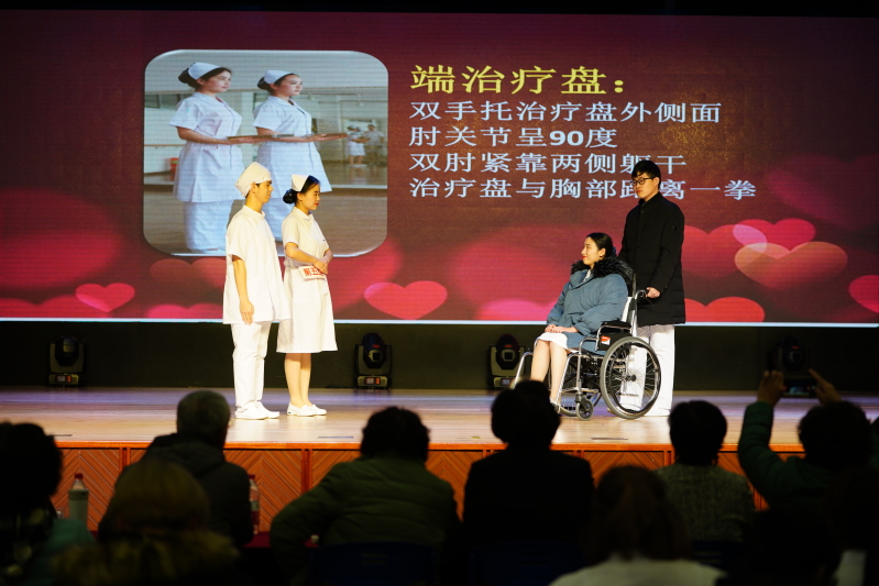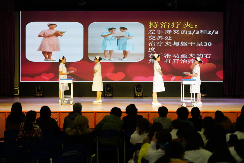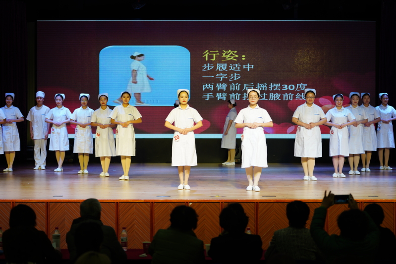 本次比賽分為個人賽和團體賽兩部分。選手們統(tǒng)一身著整潔的護士服,在個人賽部分進行了站姿、蹲姿、坐姿及搬椅子等動作的展示。挺拔、自然、優(yōu)雅的形象深入人心,贏得了觀眾的陣陣掌聲。團體賽部分,選手們以班級為單位,從端治療盤、持病歷夾、推治療車三個方面,對護理禮儀進行了精彩的展示,將本次比賽推上了高潮。經過兩個小時的激烈角逐,本次比賽決出了個人賽、團體賽一二三等獎。