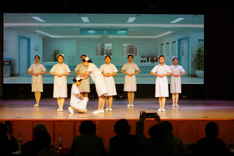 校黨委副書記,紀委書記夏臻為大賽致辭。夏書記熱烈歡迎嘉賓及同學們的到來,并點明本次比賽的主題為“發(fā)揚南丁格爾精神,展現人間的美”。她告訴同學們比賽第二,塑造良好的職業(yè)風貌,促進學院禮儀教育文化的發(fā)展為第一,所以希望同學們盡情展現自己的學習成果,秀出風采,賽出水平。