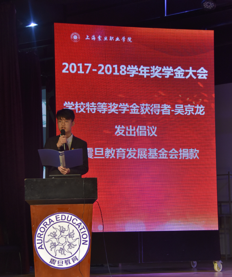 此次頒獎(jiǎng)大會(huì)上,所有獲獎(jiǎng)同學(xué)還主動(dòng)發(fā)起了“感恩母校、反哺社會(huì)”公益捐款活動(dòng)。在本學(xué)年特等獎(jiǎng)學(xué)金獲得者吳京龍同學(xué)的倡議下,獲獎(jiǎng)同學(xué)紛紛向上海震旦教育發(fā)展基金會(huì)捐款,希望實(shí)現(xiàn)個(gè)人價(jià)值的同時(shí)努力回報(bào)社會(huì).