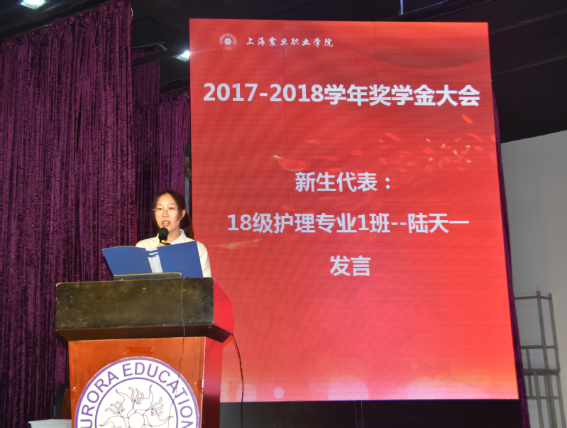 伴隨著莊嚴(yán)的國(guó)歌,大會(huì)正式拉開(kāi)序幕。首先,上海震旦職業(yè)學(xué)院黨委書(shū)記黃晞建宣讀了《關(guān)于表彰2017-2018學(xué)年國(guó)家獎(jiǎng)學(xué)金、上海市獎(jiǎng)學(xué)金、國(guó)家勵(lì)志獎(jiǎng)學(xué)金獲獎(jiǎng)學(xué)生的決定》以及《關(guān)于表彰2017-2018學(xué)年上海震旦職業(yè)學(xué)院“震旦之光”杰出獎(jiǎng)學(xué)金獲獎(jiǎng)學(xué)生的決定》;然后,校長(zhǎng)陳力華宣讀了《關(guān)于表彰2017-2018學(xué)年上海震旦職業(yè)學(xué)院震旦獎(jiǎng)學(xué)金獲獎(jiǎng)學(xué)生的決定》和《關(guān)于表彰2017-2018學(xué)年上海震旦職業(yè)學(xué)院震旦勵(lì)志獎(jiǎng)學(xué)金獲獎(jiǎng)學(xué)生的決定》;最后,黨委副書(shū)記夏臻宣讀了《關(guān)于表彰2017-2018學(xué)年震旦星星獎(jiǎng)學(xué)金獲獎(jiǎng)學(xué)生的決定》、《關(guān)于表彰2017-2018學(xué)年震旦“公益之星”獎(jiǎng)學(xué)金獲獎(jiǎng)學(xué)生的決定》和《關(guān)于表彰2017-2018學(xué)年上海震旦職業(yè)學(xué)院優(yōu)秀班級(jí)、優(yōu)秀學(xué)生干部、優(yōu)秀學(xué)生的決定》。表彰決定宣讀完畢,獲獎(jiǎng)學(xué)生依次上臺(tái)領(lǐng)獎(jiǎng)。