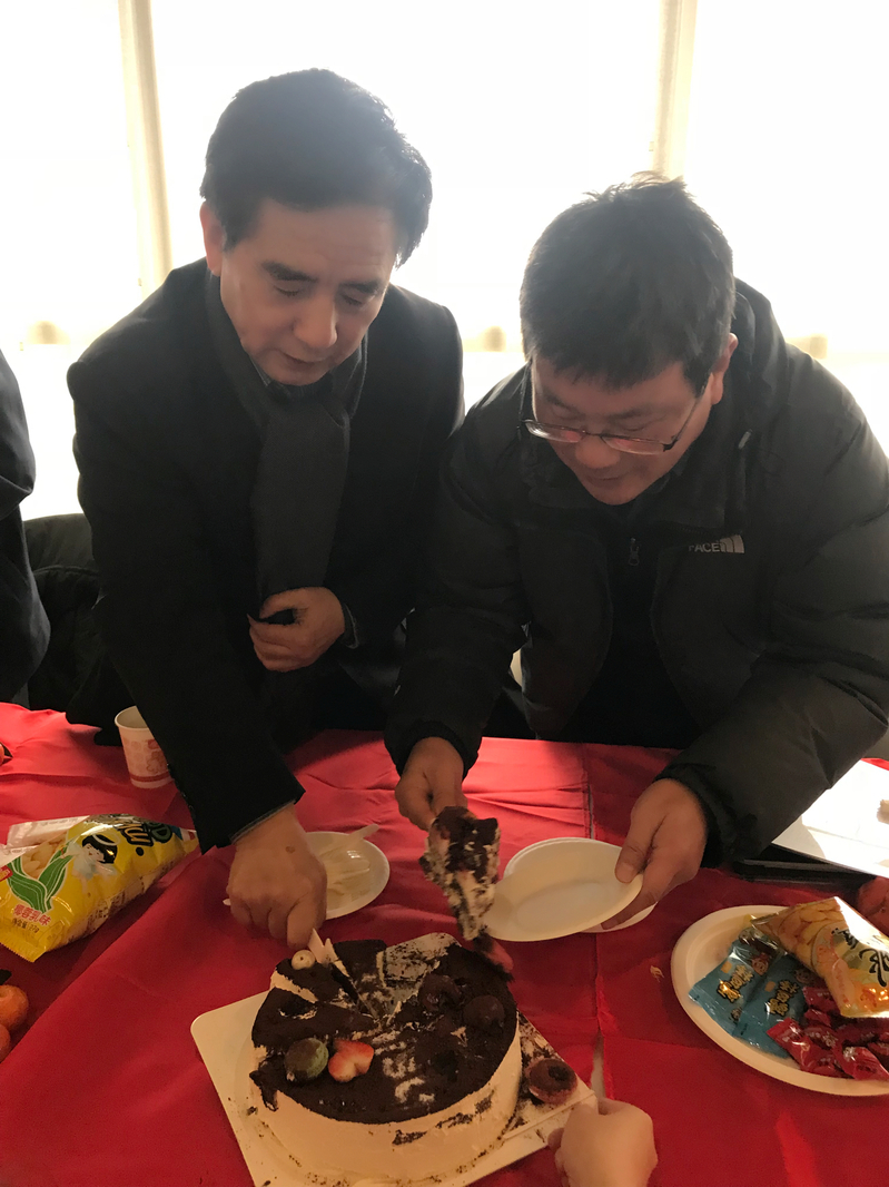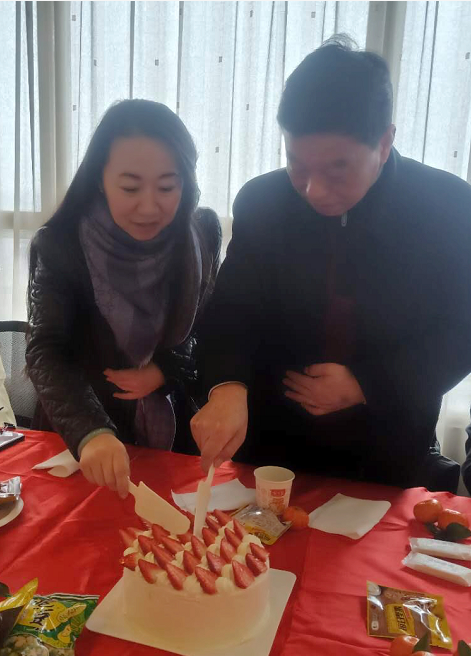 最后,會(huì)議在領(lǐng)導(dǎo)的諄諄教導(dǎo)與大伙分吃蛋糕的快樂(lè)氛圍中結(jié)束。