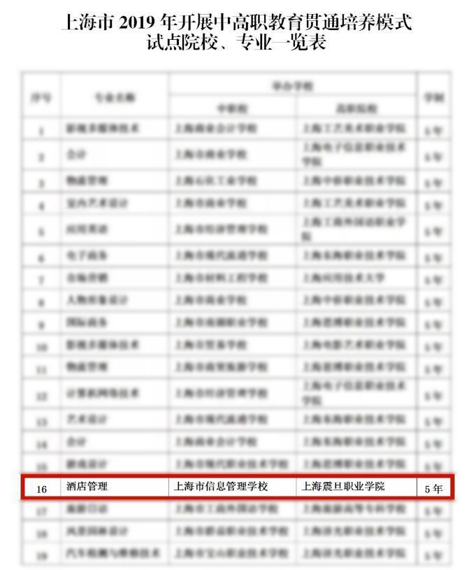 近日,上海市教委下達《關(guān)于2019年增設(shè)26個專業(yè)點開展中高職教育貫通培養(yǎng)模式試點工作的批復》(滬教委職〔2019〕14號),我校與上海市信息管理學校聯(lián)合申報的酒店管理專業(yè)獲批。