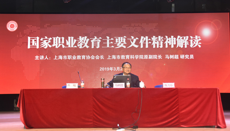 2019年3月27日下午,學(xué)校全體教職工在大禮堂進行了2019年第一次全員培訓(xùn),邀請了上海市職業(yè)教育協(xié)會會長、上海教科院高職研究中心主任馬樹超教授做題為“新時代高職教育機遇與改革發(fā)展策略”的專題報告。
