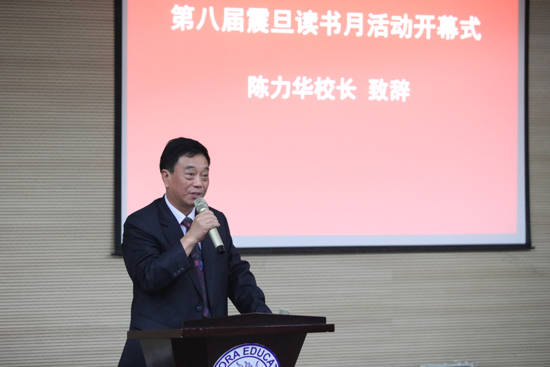 陳力華校長為開幕儀式致詞,回顧了自身的閱讀經(jīng)歷并引用經(jīng)典名篇說明了讀書的重要性,號(hào)召同學(xué)們積極思考,心懷國家事天下事,勤奮學(xué)習(xí),努力讀書,不斷提升自身的素養(yǎng)與品格,承擔(dān)大學(xué)生應(yīng)盡的歷史使命,為建設(shè)富強(qiáng)的國家貢獻(xiàn)力量。最后,陳校長宣布第八屆“震旦讀書月”正式開幕。
