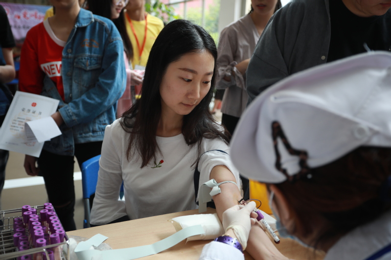 活動(dòng)從上午9點(diǎn)持續(xù)到下午2點(diǎn),前來(lái)入庫(kù)的同學(xué),在工作人員耐心細(xì)致地指導(dǎo)下進(jìn)行信息登記、填寫(xiě)表格。表格審核通過(guò)后,領(lǐng)取試管排隊(duì)采集6~8ml血液樣本完成入庫(kù)、領(lǐng)取榮譽(yù)證書(shū)。不僅有同學(xué)們的積極參與,我校青年教師也積極投身于此次活動(dòng)中來(lái),震旦中專鐘劼菁校長(zhǎng)、閔亮老師和張文婧老師,公共衛(wèi)生與護(hù)理學(xué)院輔導(dǎo)員耿梅老師、張超老師、劉嬌嬌老師,教育學(xué)院張可可老師、李婧老師、王芳老師和信息辦程茂華老師也擼起袖子志愿加入中華骨髓庫(kù),成為其中的一員。我校自2012年開(kāi)展造血干細(xì)胞志愿者招募活動(dòng)以來(lái),今年已經(jīng)是第8個(gè)年頭了,震旦師生為這項(xiàng)活動(dòng)付出了很大的努力,也將在學(xué)校領(lǐng)導(dǎo)的支持和帶動(dòng)下,把這項(xiàng)活動(dòng)辦出品牌、辦出特色。