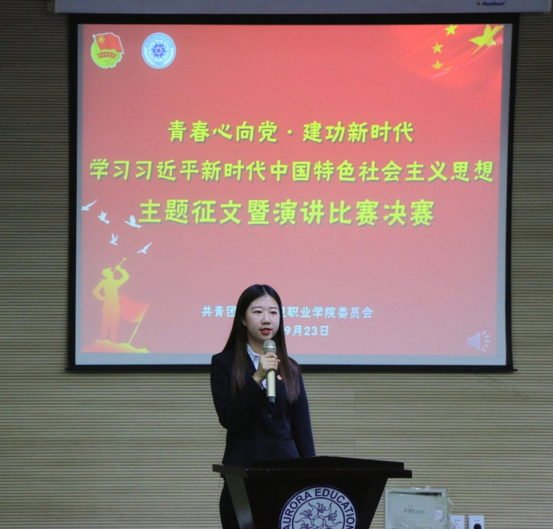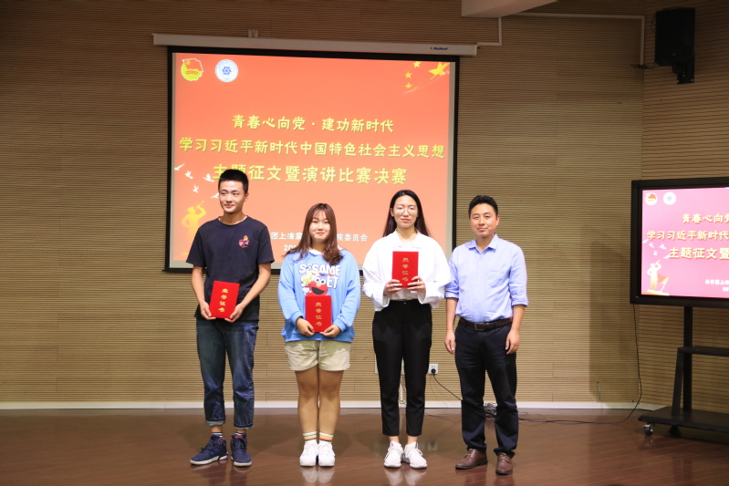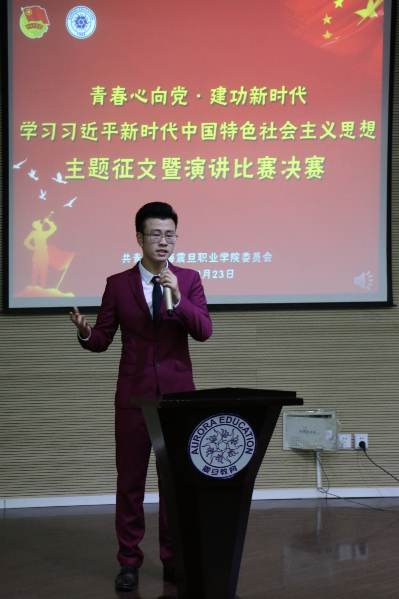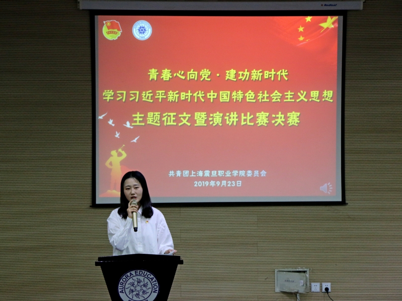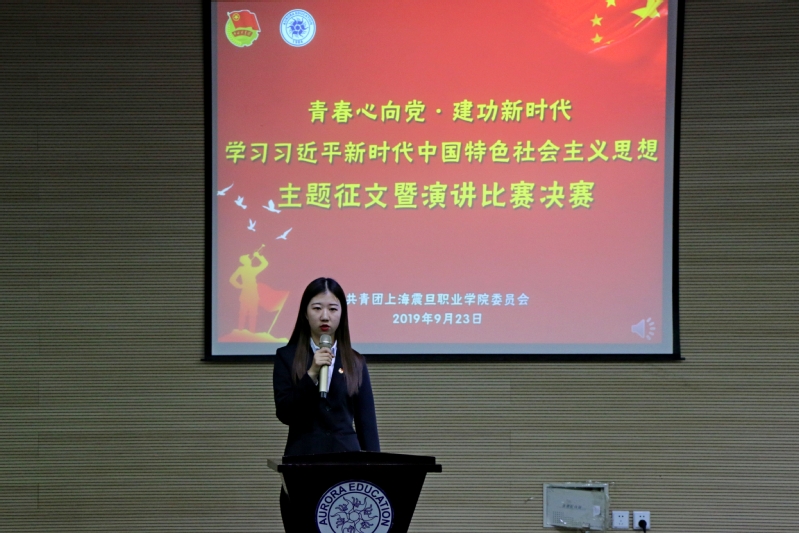 為隆重慶祝中華人民共和國(guó)成立70周年,深入學(xué)習(xí)貫徹習(xí)近平新時(shí)代中國(guó)特色社會(huì)主義思想,充分激發(fā)大學(xué)生的愛(ài)國(guó)熱情,廣泛凝聚青春力量。我校于2019年9月24日下午4點(diǎn)30分在體藝樓報(bào)告廳隆重舉行“青春心向黨·建功新時(shí)代”——上海震旦職業(yè)學(xué)院團(tuán)員青年學(xué)習(xí)習(xí)近平新的代中國(guó)特色社會(huì)主義思想主題征文暨演講比賽決賽。出席本次比賽的評(píng)委老師有:校黨委副書記夏臻老師、校馬克思主義學(xué)院副院長(zhǎng)、思政部教學(xué)部主任魯學(xué)軍老師、校黨委辦公室主任張軍勝老師、校團(tuán)委書記曹曉莉老師、校團(tuán)委副書記邵慧老師。