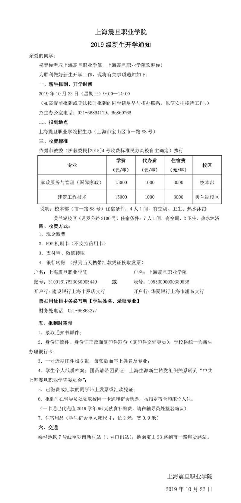 上海震旦職業(yè)學(xué)院2019年本市第二次高職擴(kuò)招專項(xiàng)考試新生開學(xué)通知