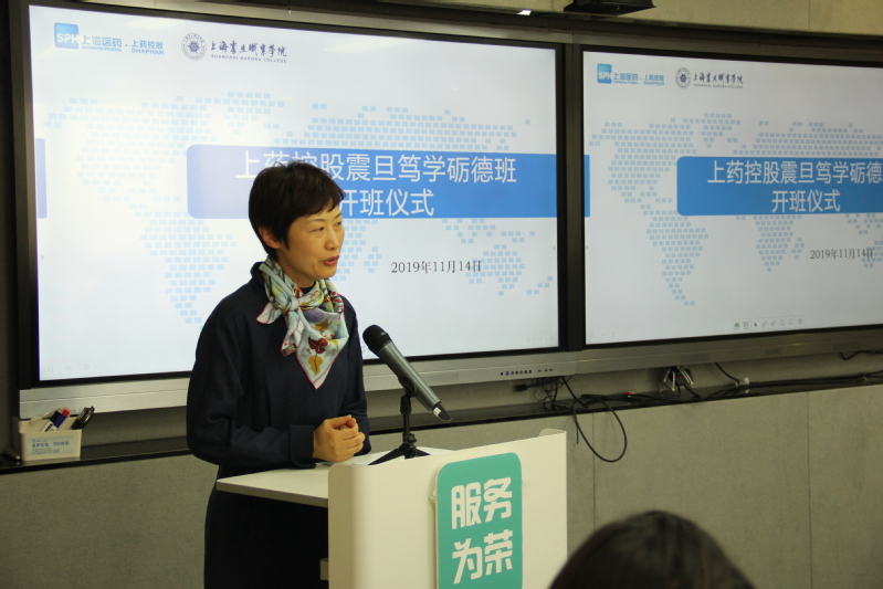 2019年11月14日篤學(xué)礪德定向班,在上藥控股舉行開(kāi)班儀式, 震旦教育發(fā)展基金會(huì)理事長(zhǎng)張惠莉、教務(wù)處長(zhǎng)張瑩、實(shí)踐與實(shí)訓(xùn)主任葉素梅、公共衛(wèi)生與護(hù)理院長(zhǎng)趙佩君、專業(yè)相關(guān)教師,以及篤學(xué)礪德班學(xué)員參加開(kāi)班儀式。上藥控股有限公司副總經(jīng)理張燕、全國(guó)供應(yīng)鏈總經(jīng)理黃振宇、人力資源高級(jí)經(jīng)理丁義華等7人出席儀式。會(huì)議由丁義華主持,張燕總經(jīng)理、趙佩君院長(zhǎng)分別致辭和講話,定向班學(xué)生代表葉微發(fā)言。