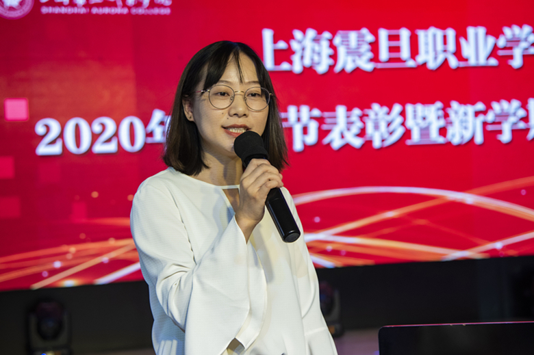 張沈董事長(zhǎng)宣讀《上海震旦職業(yè)學(xué)院優(yōu)秀園丁及師德標(biāo)兵表彰決定》