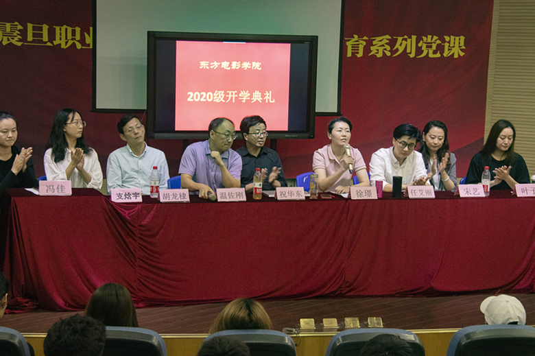 東方電影學(xué)院團總支書記馮佳老師代表全院師生首先致辭,對2020級新生加入東方電影學(xué)院這個大家庭表示歡迎。2019級戲劇影視表演專業(yè)學(xué)生李媛箐、2020級戲劇影視表演專業(yè)學(xué)生王苡晴分別代表老生、新生發(fā)言。學(xué)院實訓(xùn)室主任胡龍棣、音像技術(shù)專業(yè)主任任艾麗、影視編導(dǎo)專業(yè)主任葉子、戲劇影視表演專業(yè)主任宋藝先后介紹了實訓(xùn)室建設(shè)和專業(yè)建設(shè)情況,并對2020級同學(xué)寄予厚望。