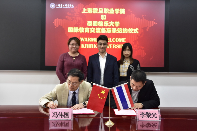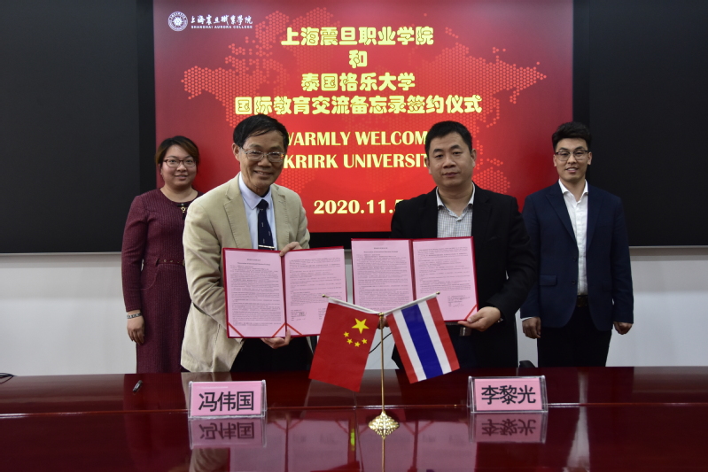 2020年11月5日,泰國(guó)格樂(lè)大學(xué)管理委員會(huì)委員李黎光博士、上海·浙江國(guó)際事務(wù)中心主任張超一行三人到訪上海震旦職業(yè)學(xué)院。我校校長(zhǎng)馮偉國(guó)博士及國(guó)際交流處熱情接待了到訪來(lái)賓。雙方就兩校今后在震旦開展專升本、專升碩等留學(xué)升學(xué)途徑等問(wèn)題進(jìn)行了探討。