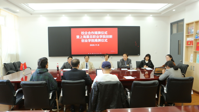 2020年11月9日下午,校企合作揭牌儀式暨上海震旦職業(yè)學院創(chuàng)新創(chuàng)業(yè)學院成立揭牌儀式在校黨建中心會議室舉行,董事長張沈,校長馮偉國,副校長喬剛,上海凡果文化傳播有限公司董事長李烽,上海凡果文化傳播有限公司副總張吉雄出席儀式,創(chuàng)新創(chuàng)業(yè)學院主要負責人、學生代表參加儀式。喬剛副校長主持儀式。