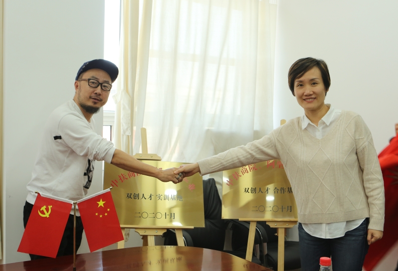 隨后,校企雙方正式揭牌“中扶商院、阿里電商培訓雙創(chuàng)人才合作基地”及“中扶商院直播電商產(chǎn)業(yè)雙創(chuàng)人才實訓基地”。會議第二個議程由馮校長宣讀《上海震旦職業(yè)學院關于成立創(chuàng)新創(chuàng)業(yè)學院的通知》并和董事長張沈一同揭牌。