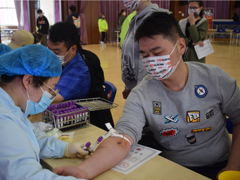 活動從上午9點持續(xù)到下午2點,前來入庫的同學們統(tǒng)一有序地戴好口罩、測量體溫、出示綠色隨申碼,在工作人員耐心細致地指導下領取表格,進行信息登記。信息核對通過后,有間隔地排隊采集6-8ml血液樣本完成入庫,領取榮譽證書。