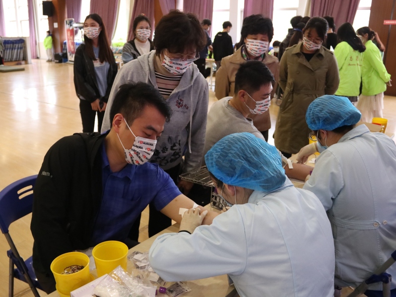 長長的隊伍,是愛心的傳承。活動現(xiàn)場,老師和同學們在用捐獻健康血液的實際行動,為挽救生命的崇高事業(yè)付出著自己的努力。同時,為公益事業(yè)奉獻出自己的一份力量。