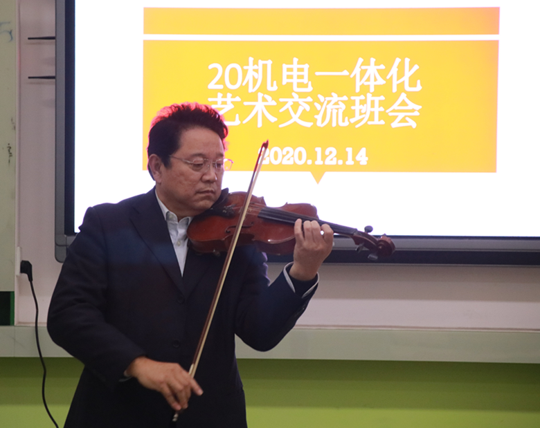 陳書記通過講解小提琴演奏技藝,闡明“知識易得、技能難求”、技能是要經(jīng)過反復(fù)歷練才能掌握的道理,進(jìn)而引導(dǎo)學(xué)生學(xué)會發(fā)現(xiàn)規(guī)律、掌握規(guī)律、運(yùn)用規(guī)律,增強(qiáng)科學(xué)思維、豐富藝術(shù)素養(yǎng)、提高專業(yè)技能。他邊講解樂理、邊示范演奏,班會的新內(nèi)容、新形式,給同學(xué)們帶來了新感受,取得了很好的效果。