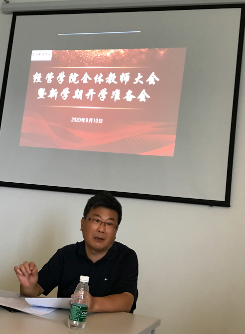 金秋九月,秋風(fēng)送爽,在第36個(gè)教師節(jié)之際,經(jīng)濟(jì)管理學(xué)院在六樓實(shí)訓(xùn)室召開(kāi)了《2020-2021學(xué)年第一學(xué)期經(jīng)濟(jì)管理學(xué)院教師大會(huì)暨青年教師說(shuō)課會(huì)》,學(xué)院全體教師參會(huì),會(huì)議由學(xué)院院長(zhǎng)胡守忠教授主持。