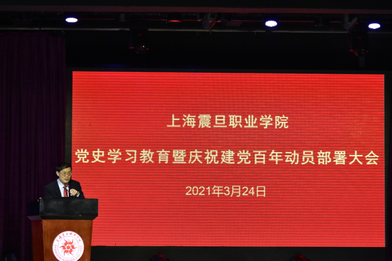 2021年3月24日,上海震旦職業(yè)學(xué)院在大禮堂召開(kāi)了黨史學(xué)習(xí)教育和建黨100周年動(dòng)員大會(huì),動(dòng)員全校各級(jí)黨組織和廣大黨員學(xué)黨史、悟思想、辦實(shí)事、開(kāi)新局。校黨委書(shū)記黃晞建、校長(zhǎng)馮偉國(guó)、黨委副書(shū)記夏臻,以及各黨總支書(shū)記和直屬支部書(shū)記、全體師生黨員和教職員工參加了大會(huì),會(huì)議由馮偉國(guó)主持。