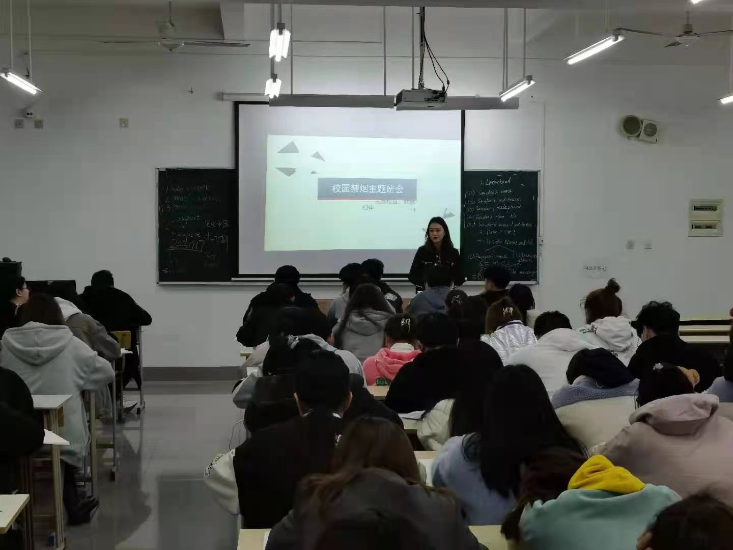 各班級紛紛開展禁煙教育主題班會,輔導員老師向全體同學介紹吸煙的危害性,引導和告誡青年學生要遠離煙草,并強調嚴禁學生在公共場所抽煙,同時傳達了學校關于禁煙的有關規(guī)定。