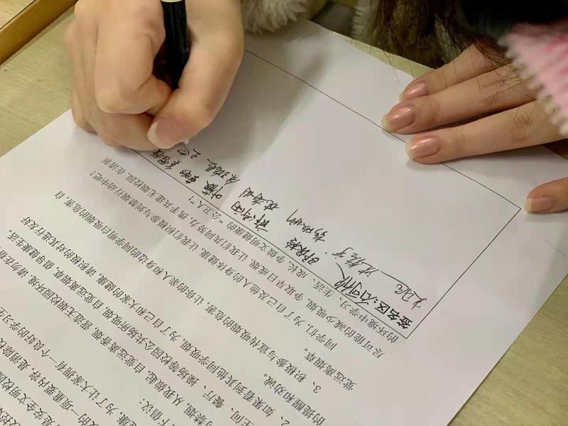 會后,學生代表帶領全體同學宣誓禁煙行動口號,并簽字保證。