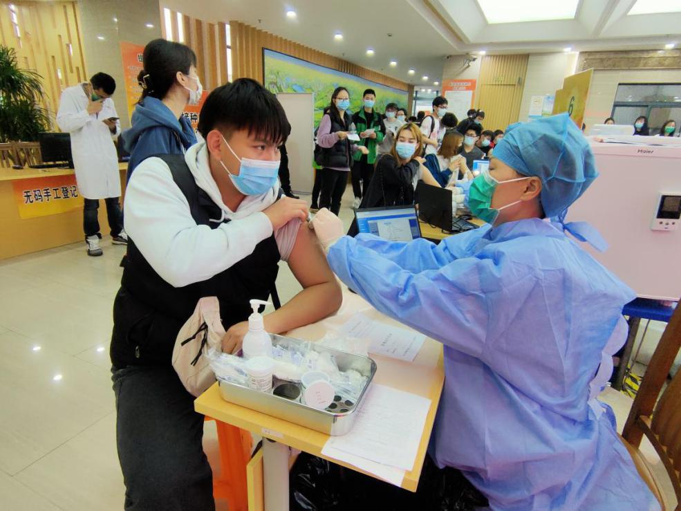 在接種前,他們積極開展現(xiàn)場秩序維護、線路指引等志愿服務,助力學校疫苗接種工作有序進行。同時,積極向同學們宣講接種注意事項,以緩解大家的緊張情緒。