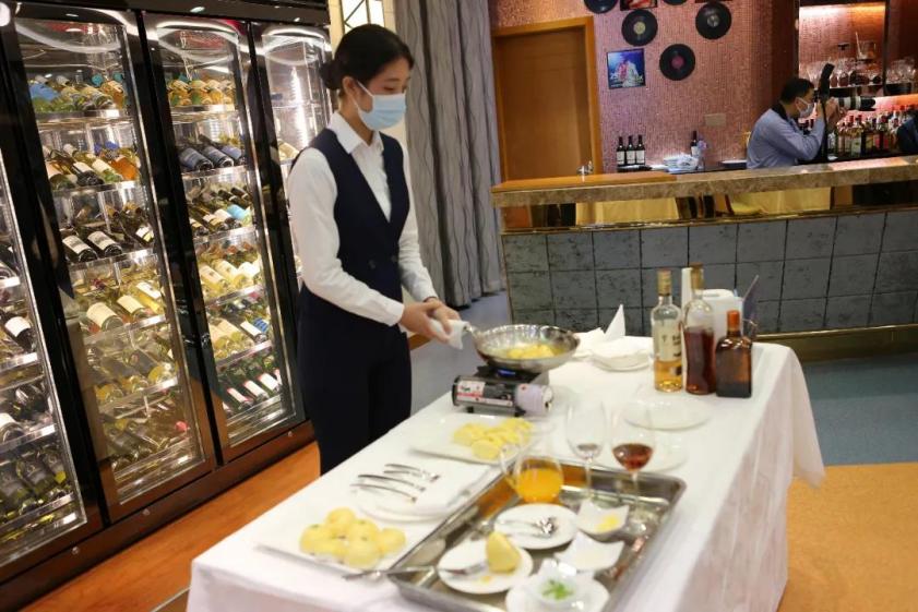 本次比賽項目主要是運用豐富的國際美食和服務等方面的專業(yè)知識,依據服務規(guī)范以及比賽要求完成咖啡制作、雞尾酒調制、水果拼盤制作、菜肴烹制、餐前準備等比賽內容,然后運用嫻熟的服務技能、有效的溝通技巧、良好的禮儀舉止為客人提供優(yōu)質餐飲服務的競賽項目。指導老師周燕萍、包一芳在集中備賽環(huán)節(jié)現(xiàn)場教學,親自示范,并手把手教學,同時模擬現(xiàn)實餐飲服務環(huán)境,克服學生餐飲項目實操的短板,并為了模擬比賽環(huán)境,帶領同學們到兄弟院校,進行比賽環(huán)境的體驗。