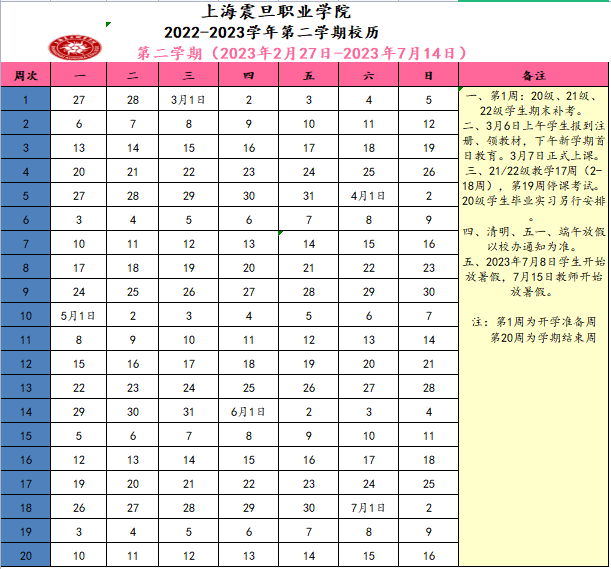 2022-2023學(xué)年校歷