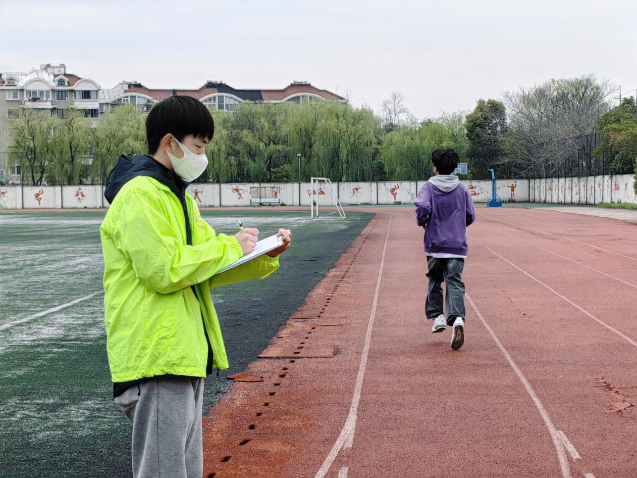 李炎在操場(chǎng)為自主招生體育校測(cè)的同學(xué)做好成績(jī)記錄