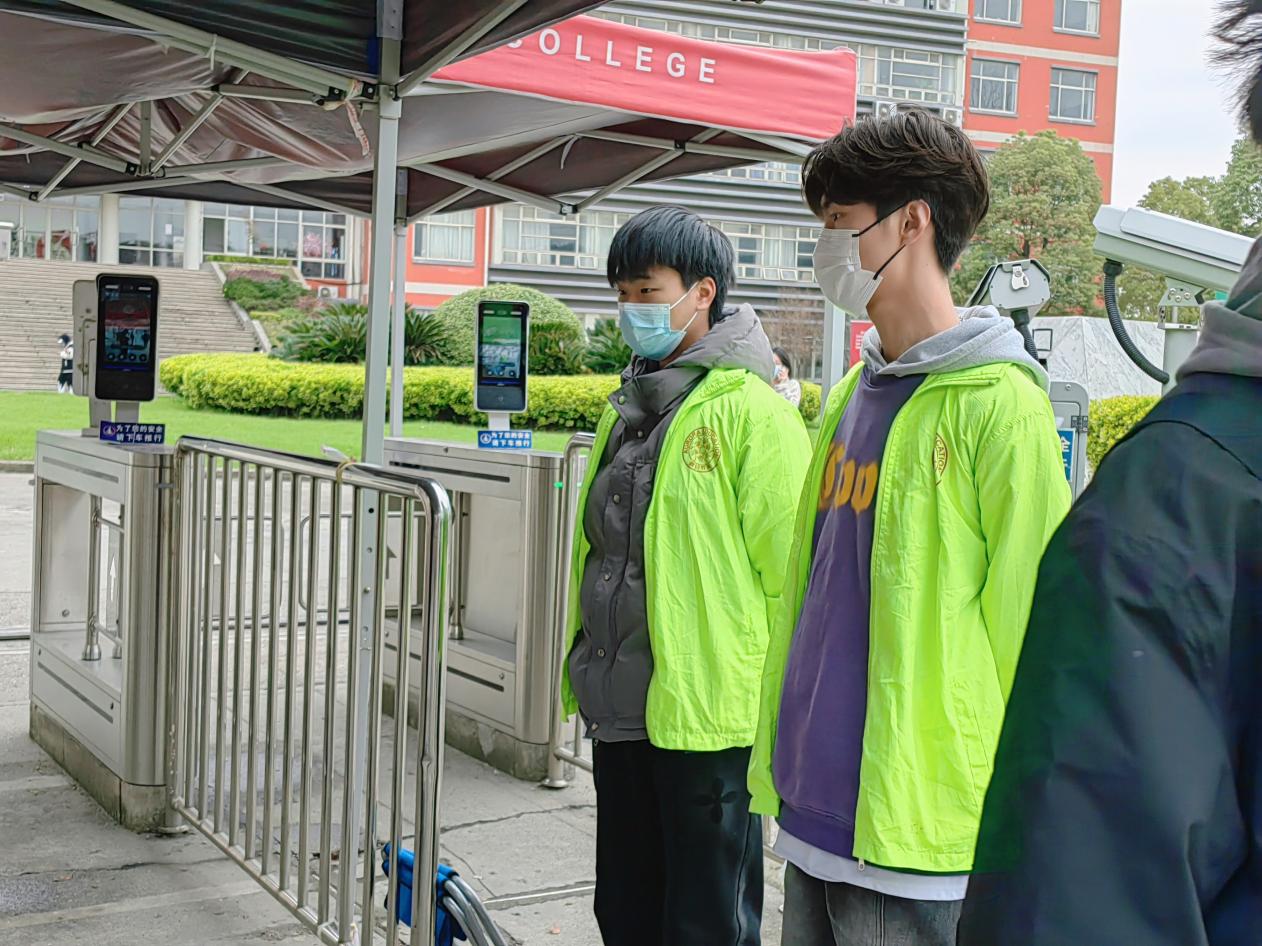 王宇恒和王燁在考場(chǎng)門口查驗(yàn)考生身份