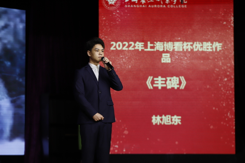 21戲劇影視表演1班林旭東帶來詩朗誦《豐碑》,該作品已進(jìn)入2022年上海市博看杯誦讀大賽決賽。盡管時光無情地飛逝,但我們都會牢記那些拋頭顱、灑熱血的日子,我們更會銘記那個扣人心弦、轟轟烈烈的年代。