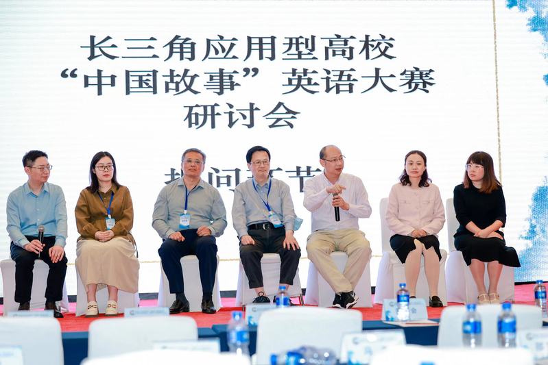 下午,專家評委就長三角應(yīng)用型高?!爸袊适隆庇⒄Z大賽開展了交流研討。