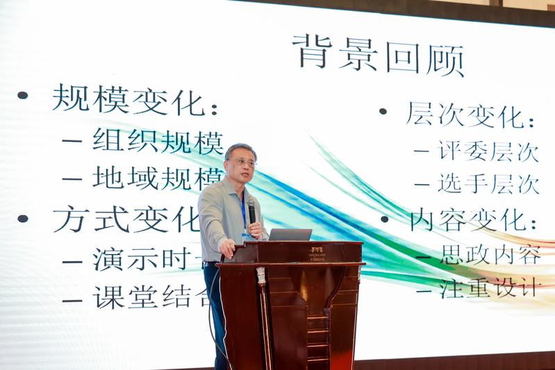 上海外國語大學(xué)賢達(dá)經(jīng)濟(jì)人文學(xué)院教授馮奇從連續(xù)四年全程參與大賽評委的角度,重點談了大賽在課程思政方面發(fā)揮的引領(lǐng)作用,并提出了七大建議,希望大賽越辦越好。