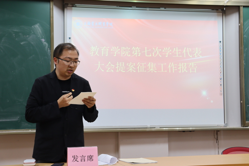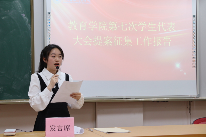 之后,教育學(xué)院組織部部長(zhǎng)許晗同學(xué)對(duì)教育學(xué)院第七次學(xué)生代表大會(huì)的所征集的提案進(jìn)行了總結(jié)以及陳述。