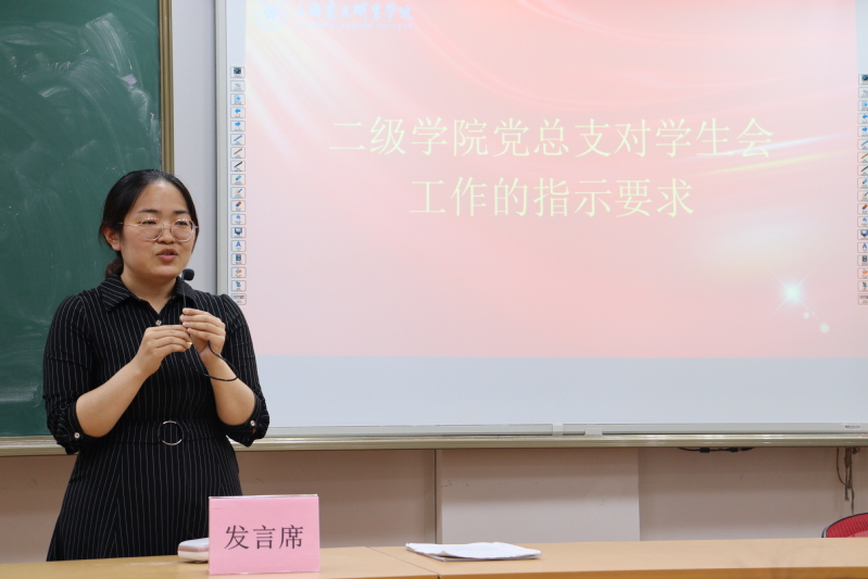 本次大會(huì)有五項(xiàng)議程。首先,王芳老師提出了黨總支對(duì)學(xué)生會(huì)工作指示要求,一是希望大家能夠樹(shù)立堅(jiān)定的理想;二是希望大家努力學(xué)習(xí)專業(yè)知識(shí),積極去提升自己;三是希望大家能夠作為班級(jí)的學(xué)生代表,履行自身的職責(zé);四是希望大家能夠做好自身應(yīng)該做的事,積極為同學(xué)服務(wù),為學(xué)校的發(fā)展服務(wù)。