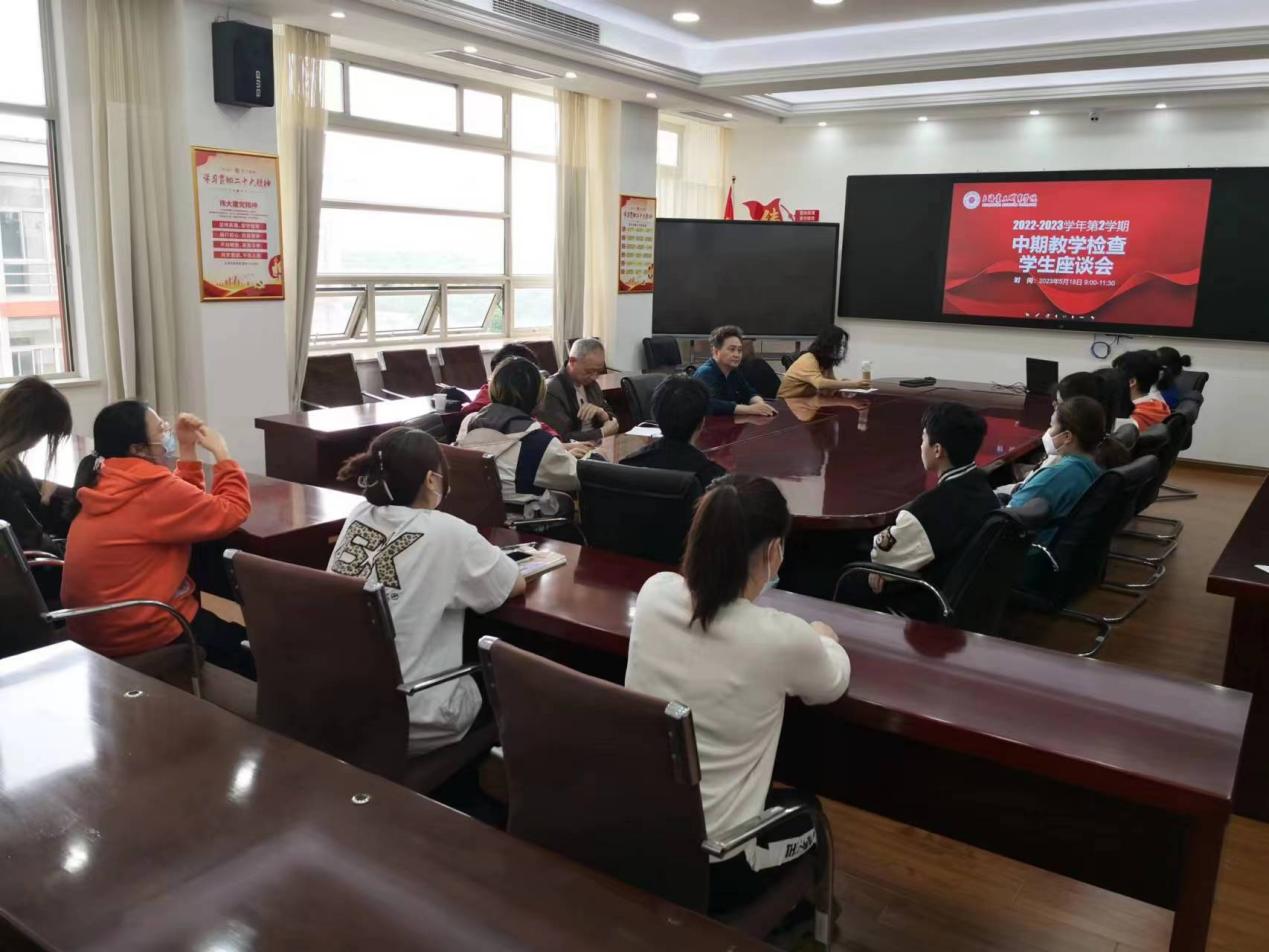 隨后,在1-417大會議室召開了學生座談會,教學督導室主任、4位校外督導專家以及21級22級各專業(yè)學生共27人參加了會議。參會學生由督導室從各二級學院隨機抽取,每位學生逐一發(fā)言,會場氣氛活躍,學生們從課程、教師、部門、學校等層面,暢所欲言地表達了自己的想法。